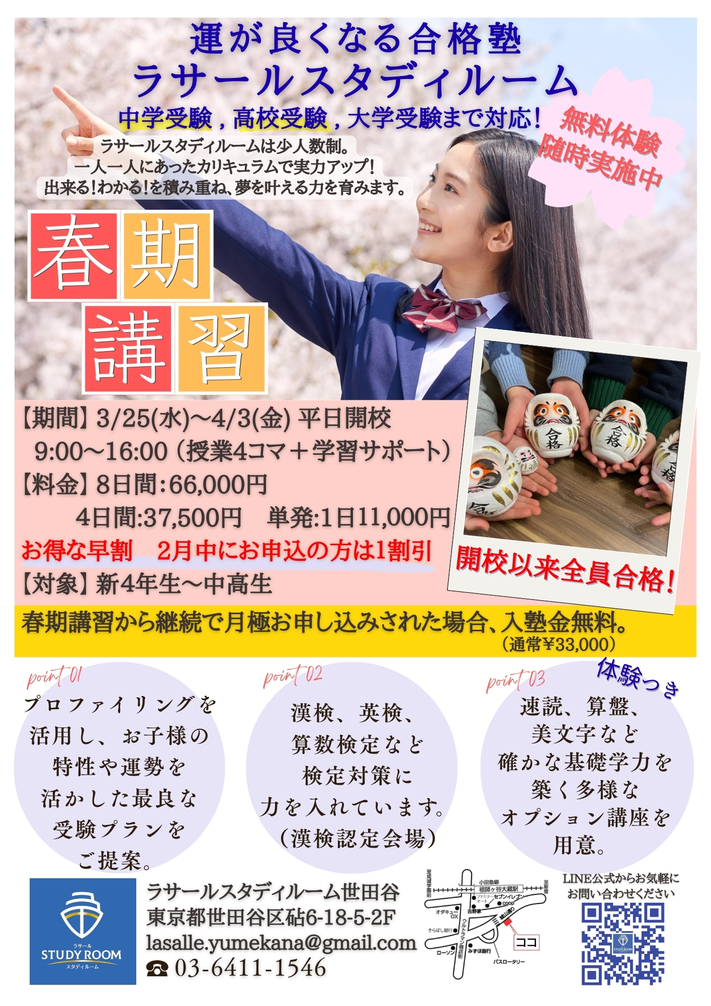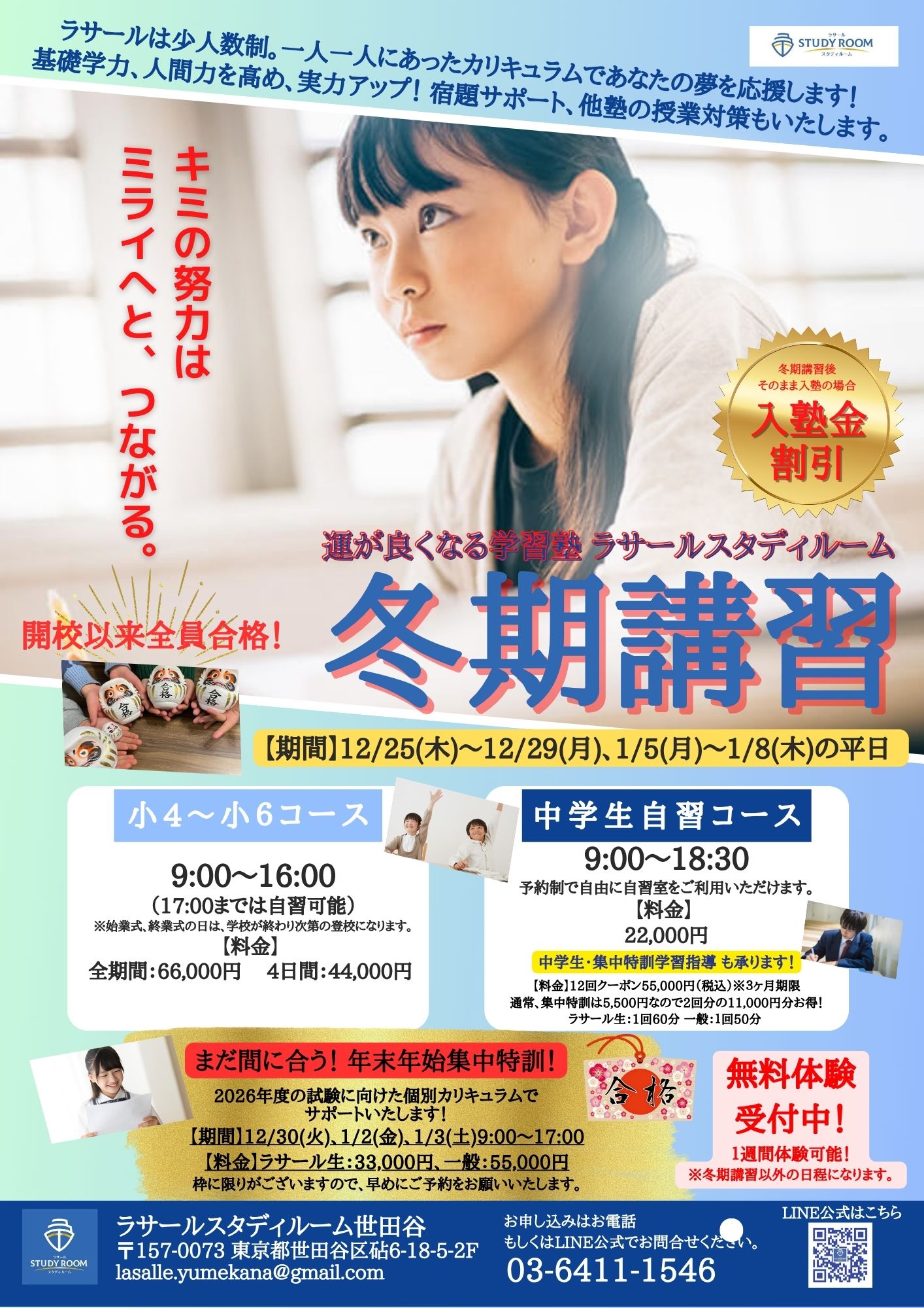 - 体験・面談は、いつでも無料です!詳細はお電話かメールでお伝えしますので、お気軽にお問い合わせくださいませ!
