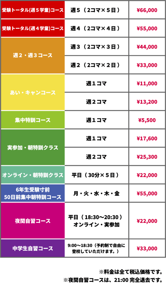 ※夜間自習コースと両方のお申し込みで、33,000円(税込) 【11,000円 お得】